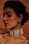 Featuring an ivory choker necklace studded with freshwater and swarovski pearls, including rose-cut zircons, set in 92.5 sterling silver. Perfect wear for weddings or any cultural events.