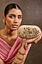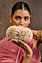 Featuring an ivory clutch in velvet base with stones, pearls, glass beads and kashida embroidery. It has a handcrafted sling handle having 3D floral motifs detailing. Style it with elegant evening gowns, embellished lehengas or chic cocktail dresses for a refined look, making it ideal for wedding receptions, cocktail parties, festive celebrations or evening wear.