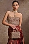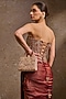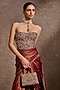 Featuring a maroon clutch in kasab satin and metal brass base with stones, beads, floral motifs and zardosi embroidery. It has a mesh handle. Style it with elegant evening gowns, embellished lehengas or chic cocktail dresses for a refined look, making it ideal for wedding receptions, cocktail parties, festive celebrations or evening wear.