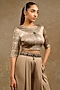 Featuring a multi-colored belt studded with gemstones, clear crystals, black oval stones and black teardrop pendant, set in metal brass. It has a gold miniature TT logo. Style it with a solid dress, saree or jumpsuit to add a pop of sparkle and definition, perfect for weddings, festive celebrations and glamorous evening looks.