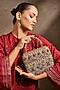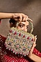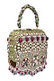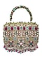 Featuring a multi-colored clutch in shantoon and metal brass base with kundan work, mirror, pearls, beads and sheeting stones hand embroidery. It has an ornate handle and a crystal knob. Style it with elegant evening gowns, embellished lehengas or chic cocktail dresses for a refined look, making it ideal for wedding receptions, cocktail parties, festive celebrations or evening wear.