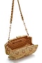 Featuring an ochre clutch studded with hotfix stones and beads, set in brocade and metal brass. It has a sling having baroque pearl embellishment and a TT monogram logo. Style it with elegant evening gowns, embellished lehengas or chic cocktail dresses for a refined look, making it ideal for wedding receptions, cocktail parties, festive celebrations or evening wear.