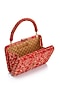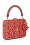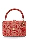 Featuring a siam red clutch in brocade and metal brass base with hotfix stones. It has a handle having a TT monogram logo and beaded tassels detailing. Style it with elegant evening gowns, embellished lehengas or chic cocktail dresses for a refined look, making it ideal for wedding receptions, cocktail parties, festive celebrations or evening wear.