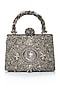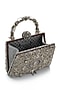 Featuring a silver clutch in double viscose georgette and metal brass base with stones, beads, zardosi and kasab embroidery. It has a stone mesh handle. Style it with elegant evening gowns, embellished lehengas or chic cocktail dresses for a refined look, making it ideal for wedding receptions, cocktail parties, festive celebrations or evening wear.