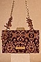 Wine Velvet Ikat Printed & Embroidered Handbag