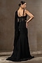 Tarun Tahiliani presents a black concept saree in chiffon base. It is paired with a blouse and a tulle net corset belt having sequins and floral motif hand embroidery. Accentuate it with diamond jewellery and embellished heels for sangeet ceremony or cocktail soirees.