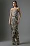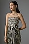 Featuring a black draped skirt in foil jersey base. It is paired with a crystal embellished corset. Accentuate it with zircon jewellery and block heels for cocktail soirees or an evening look.