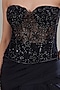 Featuring a black sheer corset in crinkle tulle base with crystal hand embroidery. It is paired with a matching metallic crinkle tulle draped skirt