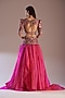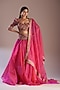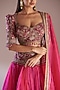Featuring a fuchsia kalidar lehenga in sheer silk and chanderi base with kashida thread work and beaded fringes. It is paired with a matching silk dupion blouse and a dupatta.