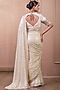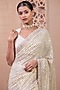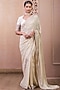 Tarun Tahiliani features a mesmerizing Ivory Saree Set that captivates with its intricate muskaish work. The eye-catching saree is crafted in georgette with hand embroidered border. It comes with a contrasting textured chanderi blouse to complete the ensemble. The designer saree set is perfect for weddings and festive occasions, showcasing style and sophistication.