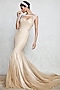 Featuring a gold gown in stretch net base with crystallized trellis.