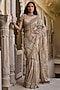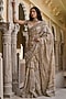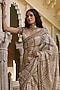 Featuring a gold saree in indian tulle base with sequins, zari, dabka and crystal embellishment. It is paired with an embroidered blouse. Accentuate it with pearl jewellery and embellished heels for a timeless regal look, perfect for weddings, grand receptions and traditional festive occasions.