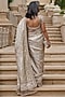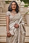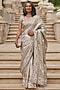 Tarun Tahiliani presents a gold saree in kanjivaram base with sequins, kundan and thread embellishments. It is paired with a hand embroidered blouse. Accentuate it with kundan polki or meenakari jewellery, embellished heels and a potli bag for a complete look, perfect wear for a wedding, sangeet or engagement ceremony.