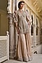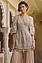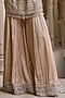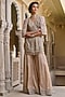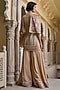 Featuring a gold kurta in indian tulle base with sequins embroidery. It is paired with lace sharara pants and a pichwai embroidered cape. Accentuate it with statement earrings and embellished heels for a regal festive look, perfect for weddings, sangeet nights and grand celebrations.