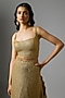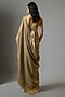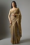 Tarun Tahiliani presents a gold saree in tulle base with sequins embellishment. It is paired with a blouse having crystal detailing. Accentuate this opulent saree with statement earrings and a sleek clutch for a truly regal ensemble, ideal for wedding receptions, cocktail nights, or grand festive celebrations.