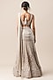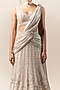 Featuring an ivory kalidar lehenga saree in tulle, tissue, and georgette base with resham, dori, and 3D floral embroidery. It is paired with a matching jersey drape and a blouse.