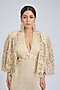 Featuring an ivory jumpsuit in foil jersey and tulle base with embroidered waist belt. It is paired with a hand embroidered cape. Accentuate it with statement earrings and block heels for evening or cocktail soirees.
