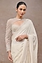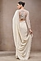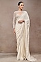 Featuring an ivory saree in georgette base with embroidery. It is paired with a tulle net pearl embroidered blouse. Accentuate it with statement jewellery and heels for weddings or sangeet ceremonies.
