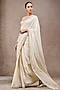 Featuring an ivory saree in georgette base with embroidery. It is paired with a tulle net pearl embroidered unstitched blouse fabric. Accentuate it with statement jewellery and heels for weddings or sangeet ceremonies.