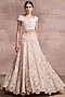 Featuring an ivory kalidar lehenga in pure georgette base with embroidery. It is paired with a matching blouse having a boat neckline.