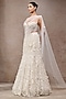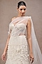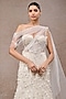 Featuring an ivory lehenga saree in soft net base with pearl embroidery. It is paired with a tulle net hand embroidered corset blouse and a tulle net drape. Accentuate it with statement jewellery and heels for weddings or sangeet ceremonies.