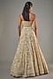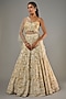 Featuring an ivory lehenga in tulle base with paisley motifs, threadwork, sequins, beads and crystal hand embroidery. It is paired with a bustier and a drape. Accentuate it with statement jewellery and heels, Ideal for weddings, receptions and grand festive occasions.