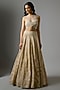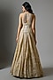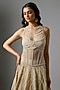 Tarun Tahiliani presents an ivory flared lehenga in tulle base with pearl and sequins embroidery. It is paired with a blouse having hand embroidery and a pearl neck detailing, including a crystal-encrusted corset. Accentuate this luxurious lehenga with statement chandelier earrings and a refined clutch for a timelessly elegant ensemble, ideal for weddings, sangeet nights or reception ceremony.