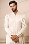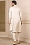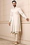 Featuring a gold draped kurta in moga satin base with semi-precious stone buttons. It is paired with matching stretch poplin churidar pants.