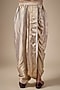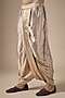 Featuring gold draped dhoti pants in silk tissue base. Style it with a kurta and mojaris for a festive occasion, sangeet or pre-wedding ceremonies.