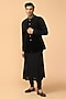 Featuring a navy blue bundi jacket in cotton velvet base. It is paired with a matching silk kerchief.