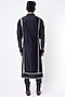 Featuring a navy blue kurta in spun silk base with textured detailing. It is paired with contrasting poplin lycra churidar pants.