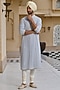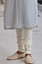 Featuring a powder blue kurta in georgette base with chikankari, french knot and pearl embroidery. It is paired with poplin lycra churidar pants. Style it with a pair of kolhapuris and a bracelet for daytime festivals, family get-togethers or pooja ceremonies.