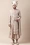 Featuring a salmon pink sherwani in raw silk, cotton jacquard, chanderi, silk, and poplin lycra base with zardosi and aari applique embroidery. It is paired with a matching kurta, stole, safa, churidar pants, a kamarbandh, and a jutti fabric.