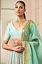 Featuring a mint and fuchsia ombre lehenga in chanderi base with print including studs and crystal embroidered tassels. It is paired with a matching foil jersey blouse and a satin organza dupatta.