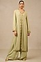 Tarun Tahiliani features a mesmerizing Mint Kurta Set that captivates with its elegance. The eye-catching kurta is crafted in silk georgette with intricate mukaish work. It is paired with flared trousers. Accessorize the designer kurta set with dangler earrings and heels for festive occasions, showcasing style and sophistication.