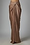 Featuring a mocha wrap-around drape top in satin base. It is paired with a draped skirt. Complete your festive look with dangler earrings and elegant heels.