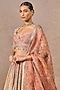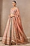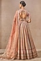 Tarun Tahiliani presents a multi-colored lehenga in sheer silk and chanderi base with print and hand embroidery. It is paired with a hand embroidered blouse and a printed dupatta. Accentuate the designer lehenga with kundan polki or emerald jewellery, embellished heels and a potli bag for a bridal look, perfect wear for a wedding or sangeet ceremony.