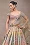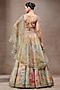 Featuring a multi-colored lehenga in chanderi base with embroidery and floral motif print. It is paired with a kasab satin hand embroidered blouse and a sheer silk printed scarf. Accentuate it with statement jewellery and heels for weddings or sangeet ceremonies.