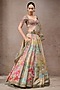 Multi-Colored Chanderi Floral Motif Printed Lehenga Set