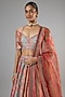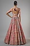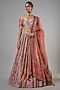 Featuring a multi-colored lehenga in chanderi and sheer silk base with print. It is paired with a swarovski encrusted blouse and a sheer silk printed dupatta. Accentuate the designer lehenga with pearl or diamond jewellery, embellished heels and a potli bag for a bridal look, Perfect wear for your wedding, sangeet or engagement ceremony.