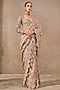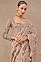 Featuring a multi-colored saree in tulle base with hand embroidery. It is paired with an embroidered blouse. Accentuate it with statement earrings and heels for a wedding, engagement or sangeet ceremony.