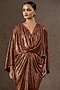 Tarun Tahiliani presents a mustard draped dress in foil jersey base. Accentuate it with gold jewellery, a clutch and embellished heels for evening soirees.