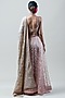 Featuring an old rose sheer lehenga in silk base with chikankari embroidery. It is paired with matching silk dupion trousers, a silk chiffon dupatta, and a blouse.