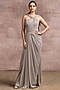 Featuring an oyster grey draped concept saree in foil crinkle jersey base with crystal chains. This contains only one piece.