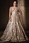 Tarun Tahiliani features a mesmerizing Oyster Lehenga Set that captivates with its elegance. The eye-catching lehenga is crafted in tulle with sequins, swarovski crystal, and pearls embellishments. It comes with an embellished blouse and a draped dupatta to complete the ensemble. The designer lehenga set is perfect for festive or wedding occasions, showcasing style and sophistication.
