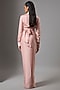 Featuring a pink draped wrap around top in satin and organza base. It is paired with a draped skirt. Accentuate it with statement earrings and heels for an evening look or cocktail soirees.
