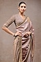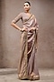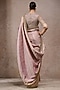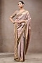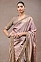 Tarun Tahiliani presents a purple and gold saree in brocade base with hand embroidery. It is paired with a lace hand embroidered unstitched blouse fabric. Accentuate it with statement jewellery and heels for weddings or sangeet ceremonies.