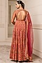 Featuring a red anarkali in chanderi silk base with embellishments. It is paired with matching churidar pants and a soft net dupatta.