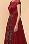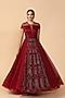 Featuring a red anarkali in chamuse, soft net, and crinkle base with embroidered panels and a pleated bodice including swarovski diamonds highlighting. It is paired with matching stretch net churidaar pants.