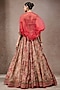 Rust Tussar Silk Printed Draped Jacket Lehenga Set